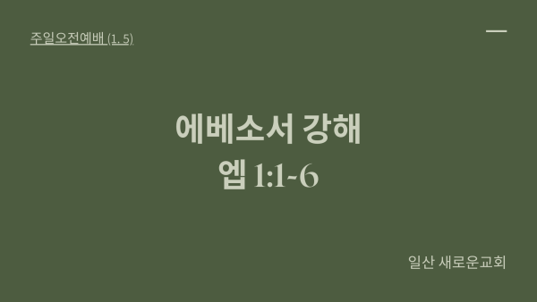 주일예배 (1. 5) 페이지 정보 목록 본문 ◀◀ ▶▶ https://youtu.be/mKVjqLIy01Q 첨부파일 에베소서 피피티.pptx (73.3K) 0회 다운로드 | DATE : 2025-01-05 17:07:09 이전글주일예배(1.12) 25.01.12 다음글주일예배(12.29) 24.12.29