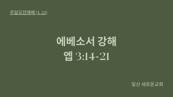 3월 23일 주일예배 페이지 정보 목록 본문 ◀◀ ▶▶ https://youtu.be/4QaQdBwVHSU 첨부파일 에베소서 피피티.pptx (78.2K) 0회 다운로드 | DATE : 2025-03-23 13:59:37 이전글3월 30일 주일예배 25.03.30 다음글주일설교(3.16) 25.03.16