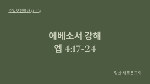 주일오전설교(4.13) 페이지 정보 목록 본문 ◀◀ ▶▶ https://youtu.be/6olckHgSO9s 첨부파일 에베소서 피피티.pptx (76.9K) 0회 다운로드 | DATE : 2025-04-13 14:02:38 이전글4월 20일 부활절 예배 25.04.20 다음글4월 6일 주일예배 25.04.06
